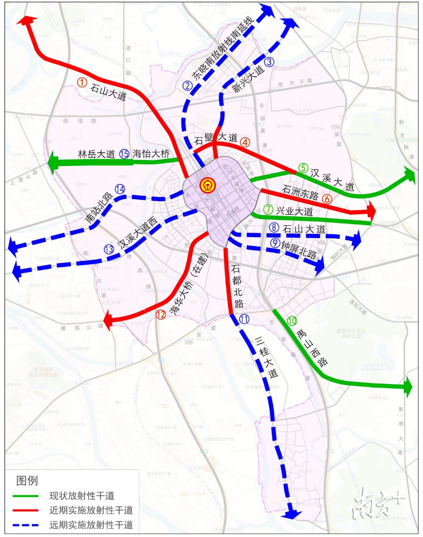通道三:東曉南放射線南延線(規(guī)劃中,9.4公里)-東曉南放射線(已通)-東曉南高架(已通),15.5公里,需時(shí)12分鐘;